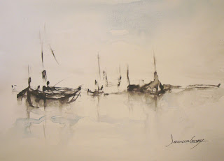 Gosto de trabalhar aguarela, a cor e a forma escorregam suavemente, e é uma técnica mto subtil pela sua transparência sem limites na expressão, a conjugação das formas na mancha transmitem a imagem que vemos ...